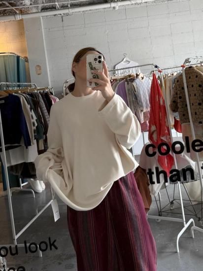 伸縮性に優れた着心地、なめらかな肌触り、落ち感を活かしたルーズシルエット。