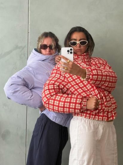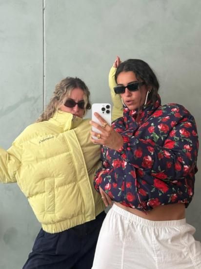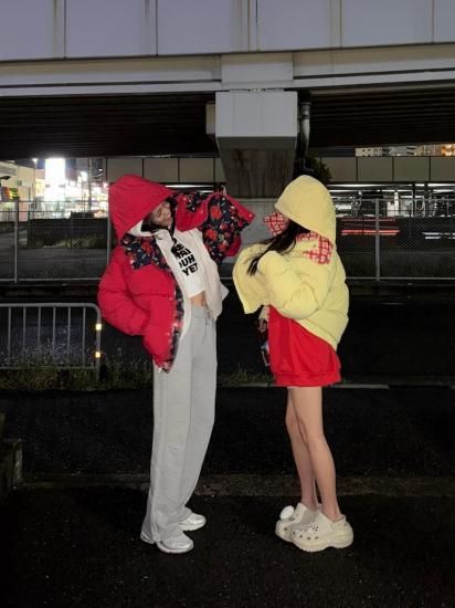 *夜の屋外の着用画像(右)は身長154cm、XS/Sを着て撮影しています