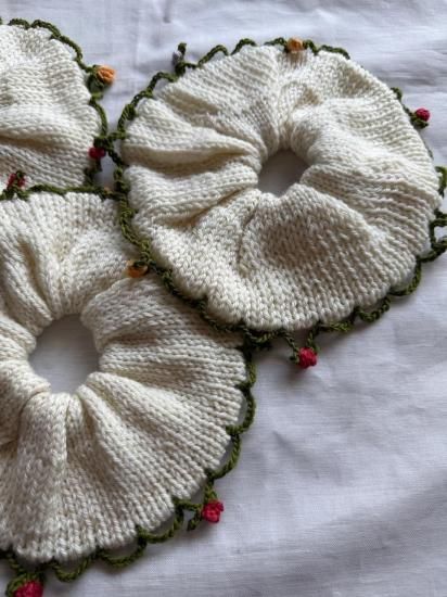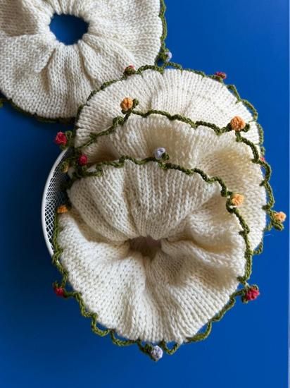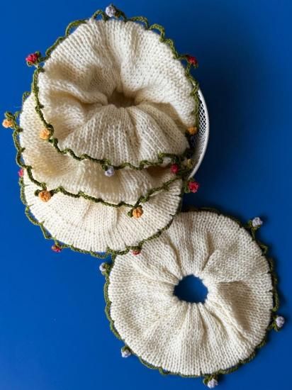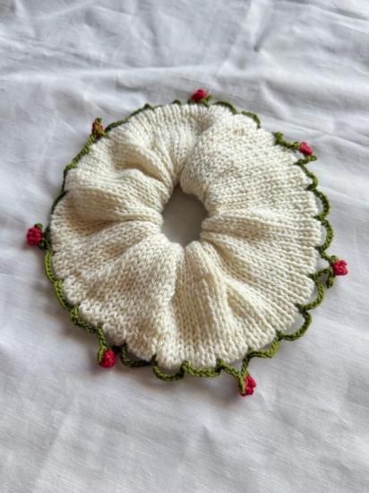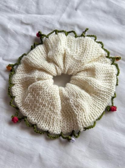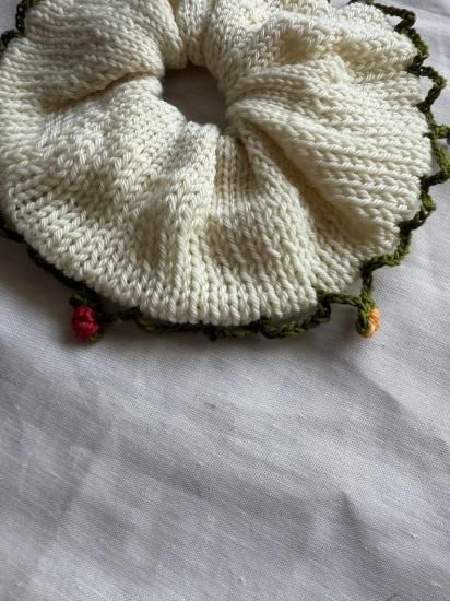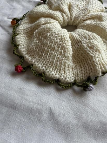 手染めの毛糸で作られた、ビッグサイズのシュシュです。