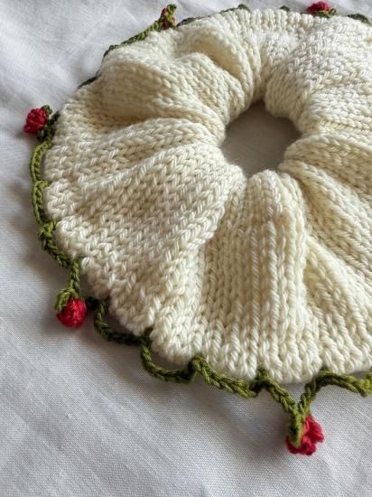 手編みのぬくもりに、さりげない野ばら。